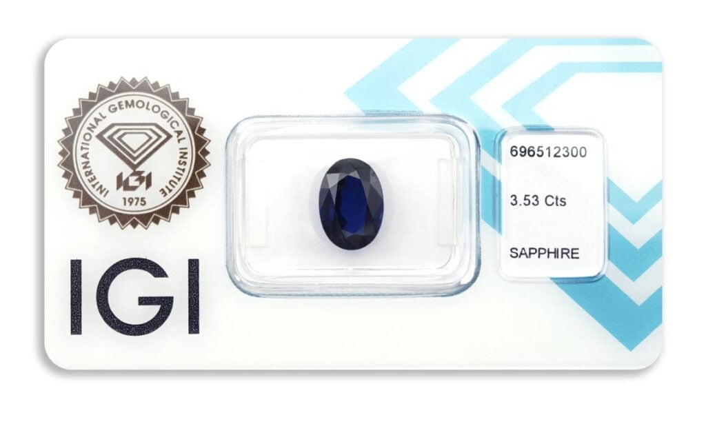 safír 3.53ct deep blue s IGI certifikátem