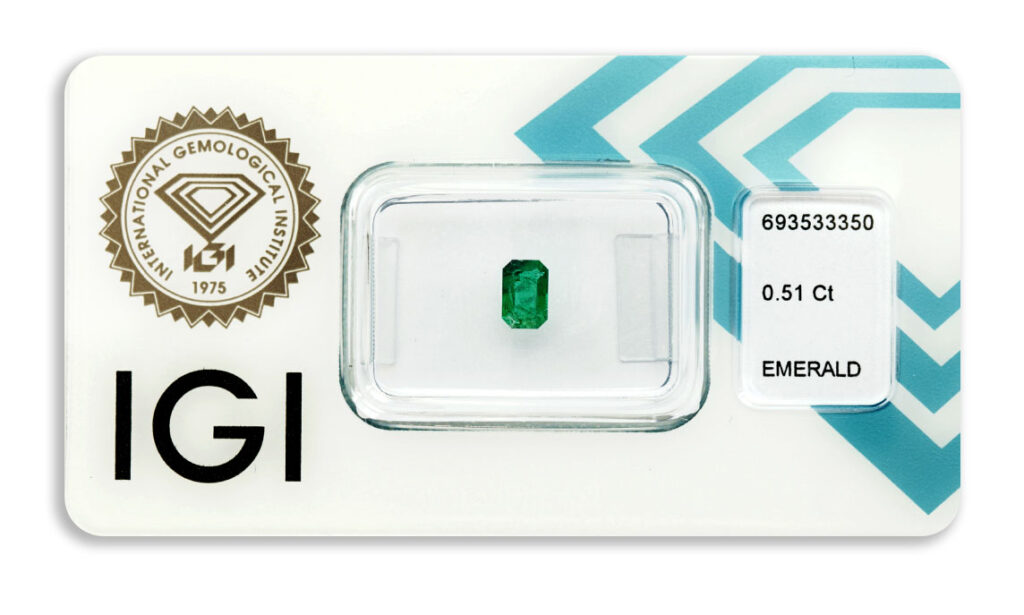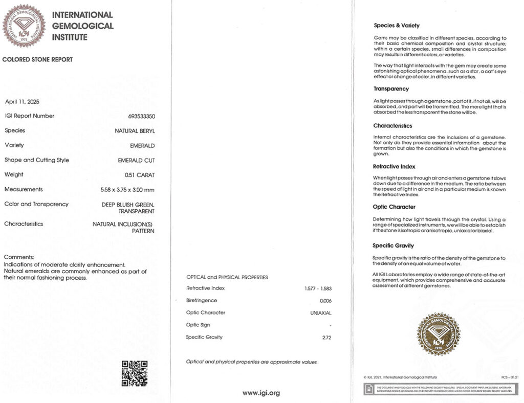 smaragd 0.51ct deep bluish green s IGI certifikátem