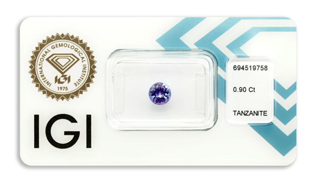 Kámen je včetně mezinárodně uznávaného certifikátu IGI a je zataven do ochranného pouzdra. Tanzanity jsou běžně tepelně vylepšovány; indikativní důkaz o úpravě obvykle chybí.