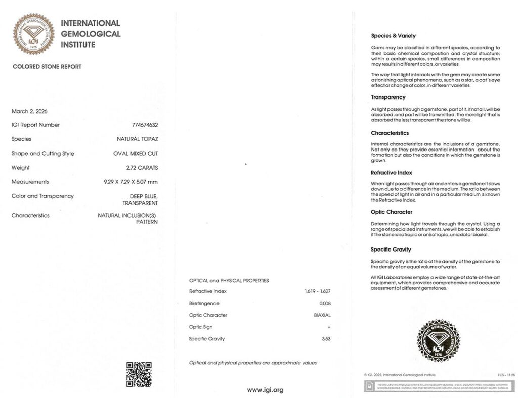 Kámen je včetně mezinárodně uznávaného certifikátu IGI a je zataven do ochranného pouzdra.