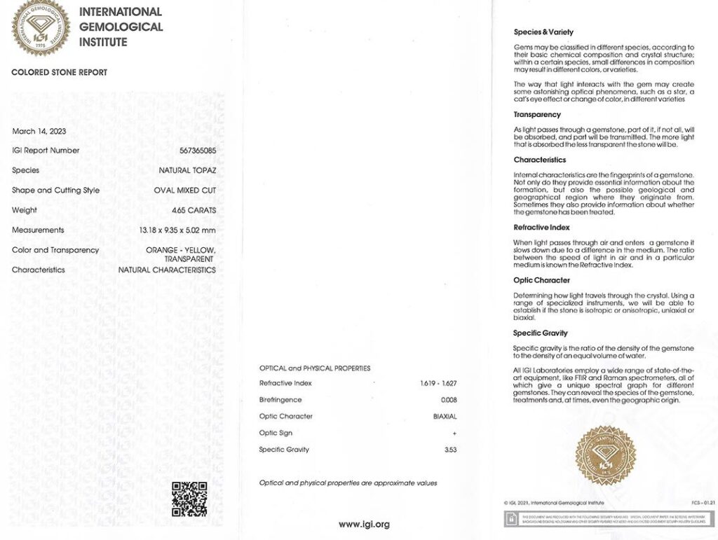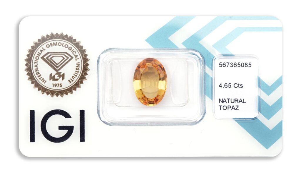 topaz 4.65ct orange - yellow s IGI certifikátem