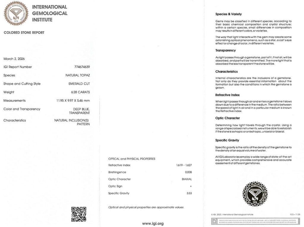 Kámen je včetně mezinárodně uznávaného certifikátu IGI a je zataven do ochranného pouzdra.
