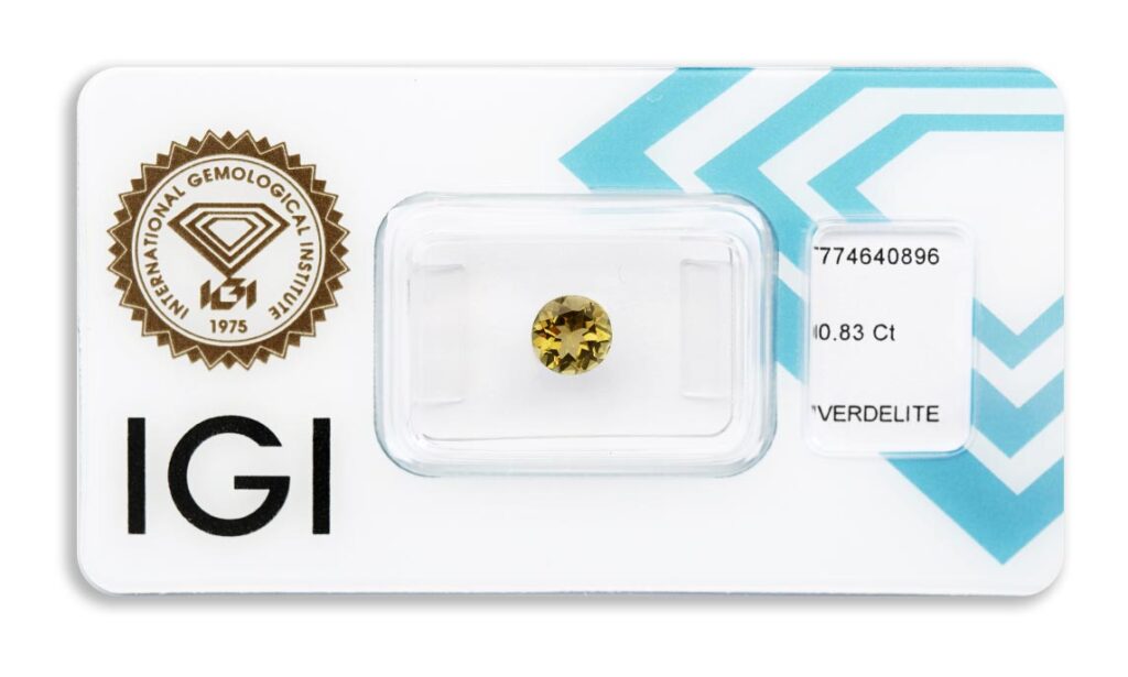 verdelit 0.83ct yellowish green s IGI certifikátem