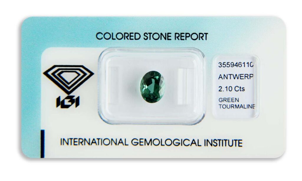 zelený turmalín 2.10ct bluish-green s IGI certifikátem