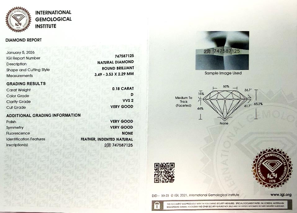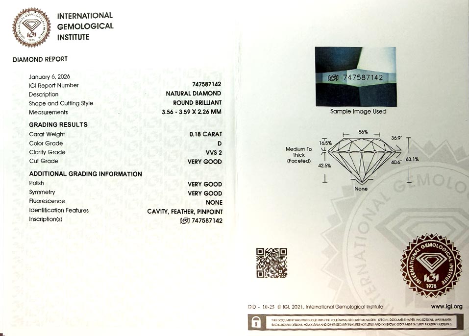 Pro snazší ověření pravosti diamantů byla jejich hrana označena mikroskopickou laserovou inskripcí laboratoře IGI.