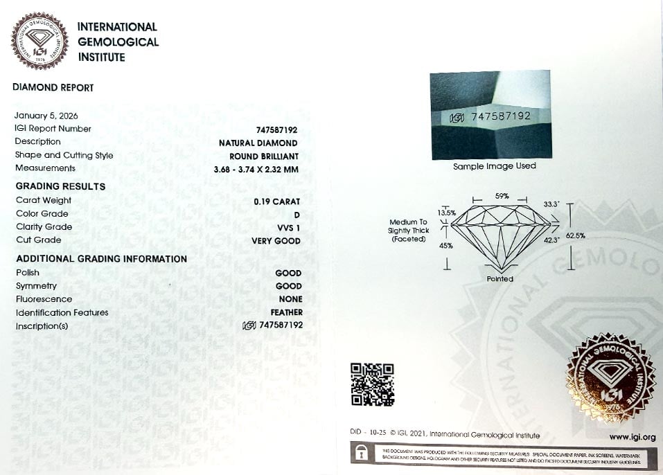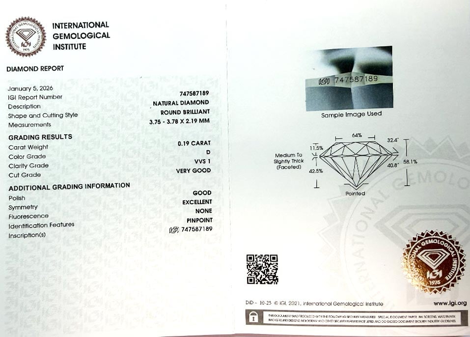 Pro snazší ověření pravosti diamantů byla jejich hrana označena mikroskopickou laserovou inskripcí laboratoře IGI.