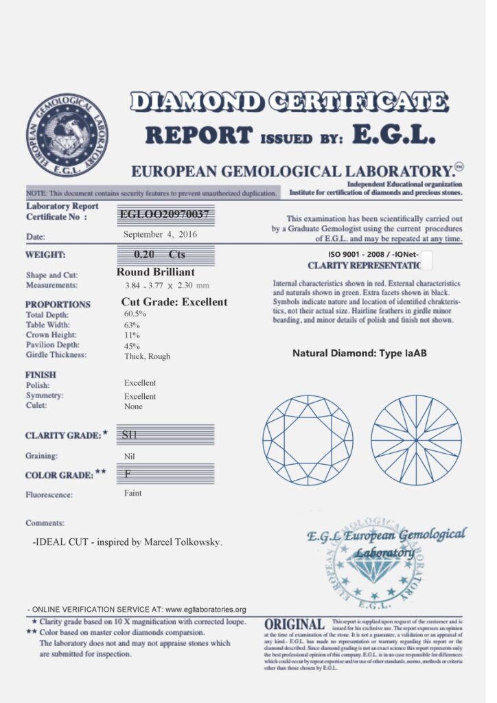 Diamant 0.20ct F/SI1 s EGL certifikátem
