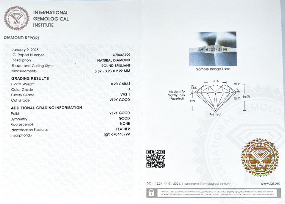 Pro snazší ověření pravosti diamantů byla jejich hrana označena mikroskopickou laserovou inskripcí laboratoře IGI.