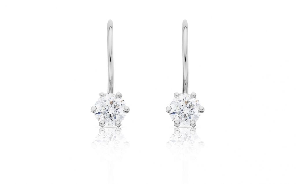 Velmi přirozený model visacích náušnic, který nerušeně zprostředkovává krásu briliantového brusu osazeného v šesti krapnovém lůžku umístěného ve spodní části závěsu. Díky jednoduchému tradičnímu designu lze náušnice snadno kombinovat s dalšími briliantovými šperky, u nichž je použito obdobné osazení. Zapínání je v tomto případě náušnic řešeno žádanou formou zvanou „dámský patent“, kdy prostor pod závěsným háčkem bezpečně uzavírá mechanická klapka, a tím zabraňuje nechtěné ztrátě šperku.