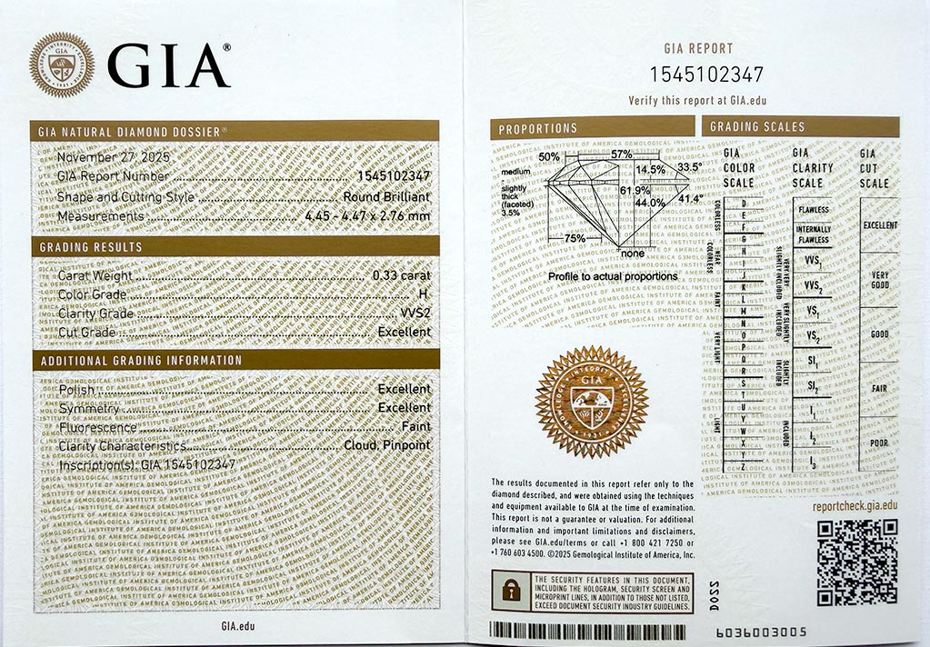 Diamant 0.33ct H/VVS2 s GIA certifikátem