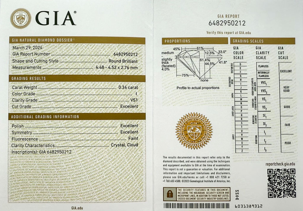 Pro snazší ověření pravosti diamantů byla jejich hrana označena mikroskopickou laserovou inskripcí laboratoře GIA.