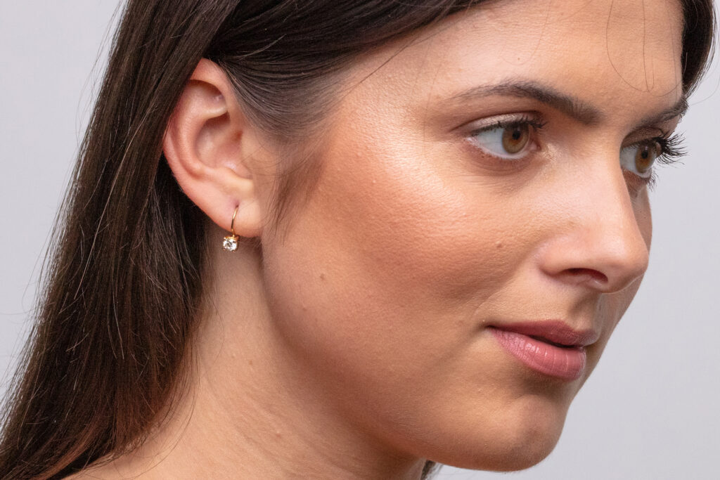Velmi přirozený model visacích náušnic, který nerušeně zprostředkovává krásu briliantového brusu osazeného do kvadratického lůžka se čtyřmi krapnami, umístěného ve spodní části závěsu. Díky jednoduchému tradičnímu designu lze náušnice snadno kombinovat s dalšími briliantovými šperky, u nichž je použit obdobný typ uchycení diamantů. Zapínání je v tomto případě náušnic řešeno oblíbenou formou zvanou „dámský patent“, kdy je prostor pod závěsným háčkem bezpečně uzavřen mechanickou klapkou zabraňující nechtěné ztrátě šperku.