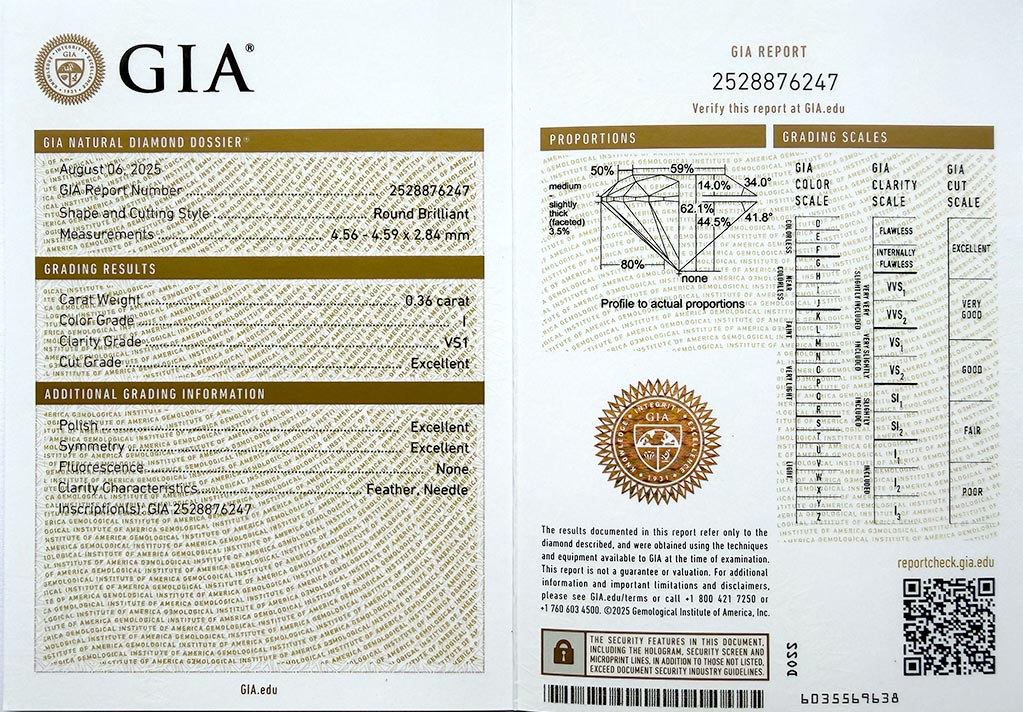 byl založen v roce 1931 a patří k absolutní špičce mezi gemologickými laboratořemi po celém světě a dodržuje pravidla stanovená Diamond High Council v plném rozsahu. Všechny diamanty na stránkách VVDiamonds opatřeny certifikátem GIA, lze verifikovat na stránkách GIA. Většina diamantů je laserově číslována pro větší bezpečnost obchodu.