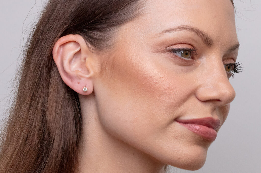 Velmi oblíbený model decentních diamantových náušnic se solitérním osazením do lůžka se šesti krapnami, které nádherně kopírují kulatý tvar briliantů všech velikostí, avšak dokonale a nerušeně nechají vyniknout jejich kráse. U typů peckových náušnic využíváme standardně zapínání na šroubek, jež patří mezi nejbezpečnější formy zapínání. Pro snadnou manipulaci s náušnicemi a snazší napojení na závit trnu používáme výhradně matičky balónkového typu. Délku závitu je univerzální, avšak v konkrétních případech může být přizpůsobena Vašim individuálním potřebám.
