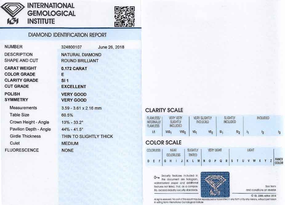 Diamant 0.172ct E/SI1 s IGI certifikátem