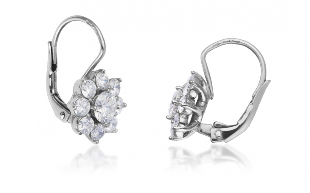 Náušnice jsou zhotoveny ve 14k bílém zlatě a osazeny následujícími diamanty: