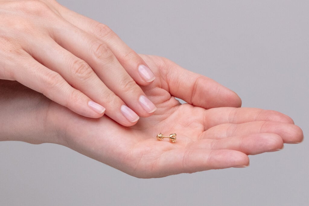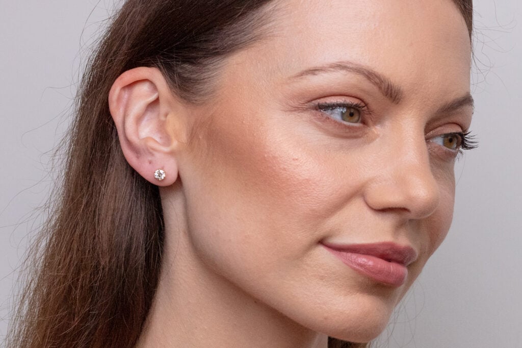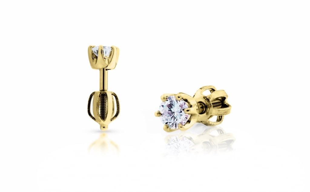 Velmi oblíbený model decentních diamantových náušnic se solitérním osazením do lůžka se šesti krapnami, které nádherně kopírují kulatý tvar briliantů všech velikostí, avšak dokonale a nerušeně nechají vyniknout jejich kráse. U typů peckových náušnic využíváme standardně zapínání na šroubek, jež patří mezi nejbezpečnější formy zapínání. Pro snadnou manipulaci s náušnicemi a snazší napojení na závit trnu používáme výhradně matičky balónkového typu. Délku závitu je univerzální, avšak v konkrétních případech může být přizpůsobena Vašim individuálním potřebám.