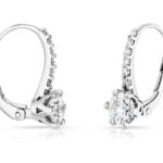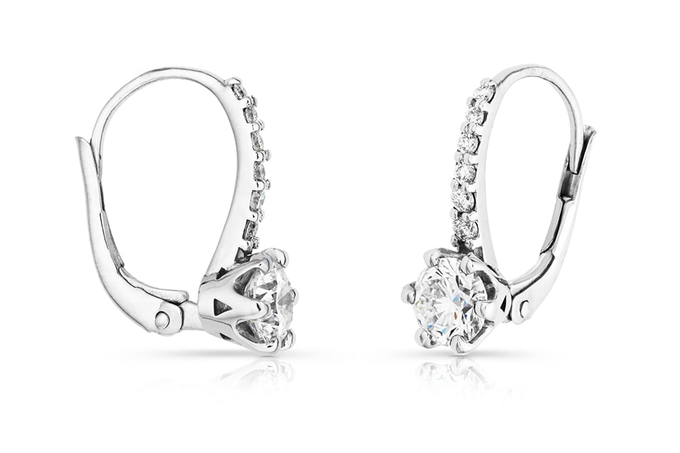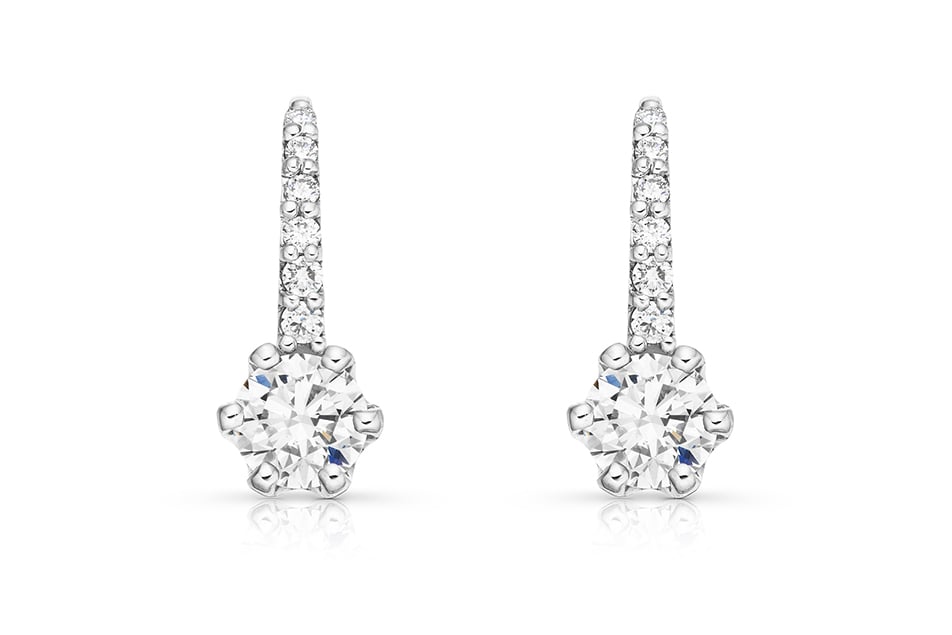 Elegantní diamantové náušnice s jemným vertikálním designem, který vyniká svou lehkostí a harmonickými liniemi. Každou náušnici zdobí centrální diamant briliantového brusu, uchycený do šestikrapnového osazení, jež umožňuje výrazný průnik světla a podtrhuje jeho brilanci. Samotný závěs náušnice je osázen řadou menších přírodních necertifikovaných diamantů v nastavení 2x 1.30mm, 1x 1.40mm, 1x 1.50mm, 1x 1.60mm, a 1x 1.70mm, které postupně přecházejí do elegantního zúžení a vytvářejí dojem plynulé jiskřivé linky. Celkový soušet hmotnosti necertifikovaných diamantů ve šperku činí 0.16ct.