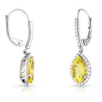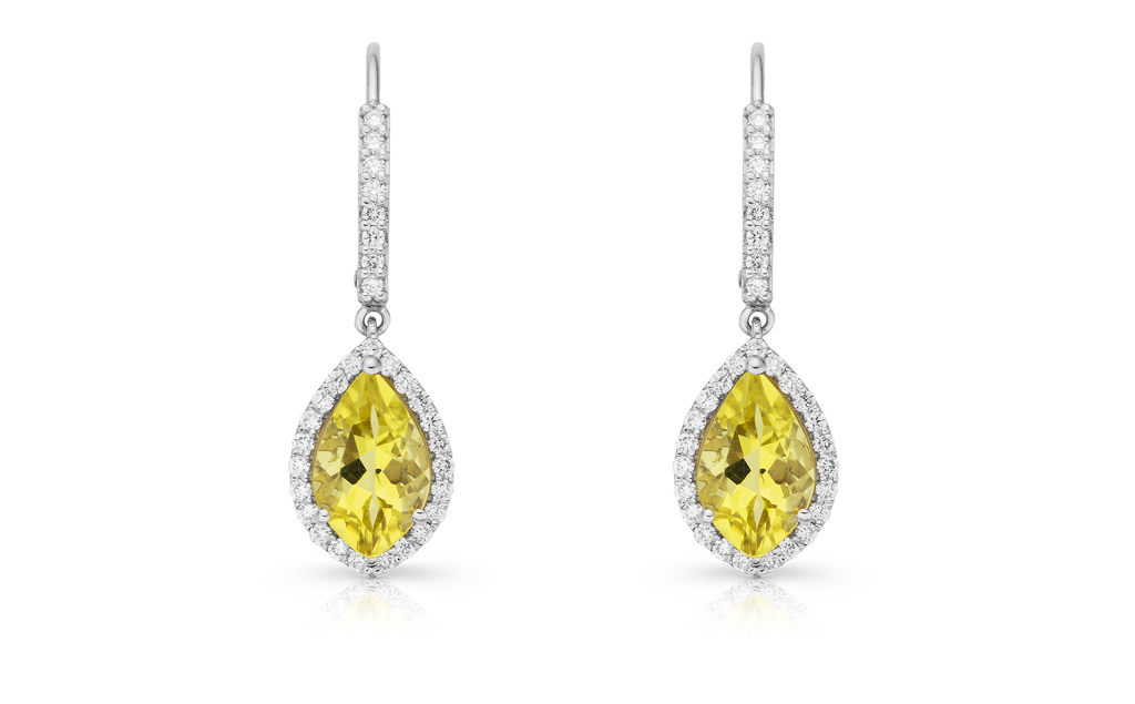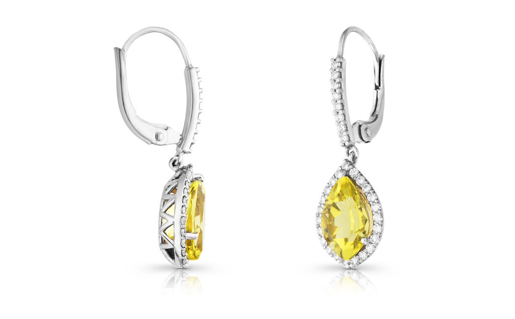 Náušnice dále zdobí přírodní kalibrované diamanty o celkové hmotnosti 0.50ct v kvalitě G/VS2, jejichž brilance podtrhuje sytý odstín citrínů a dodává šperku nepřehlédnutelný charakter.