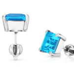 zlaté náušnice s modrými topazy 6.64ct s IGI certifikáty