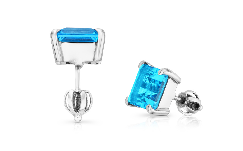 Jasně modrý odstín topazů nádherně ladí s dokonalým leskem bílého zlata a dodává šperku svěží a velmi elegantní charakter.