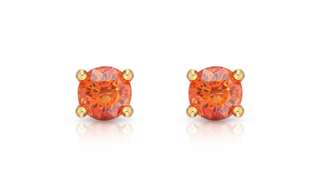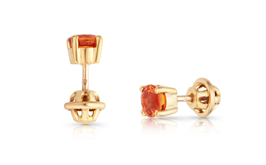 Náušnice s přírodními oranžovými safíry z 18k žlutého zlata, precizně ručně vyrobené v pražském ateliéru. Dominantou šperku jsou safíry méně tradiční oranžové barvy o celkové hmotnosti 1.11ct, jejichž původ a parametry jsou doloženy mezinárodně uznávanými certifikáty gemologické laboratoře IGI.
