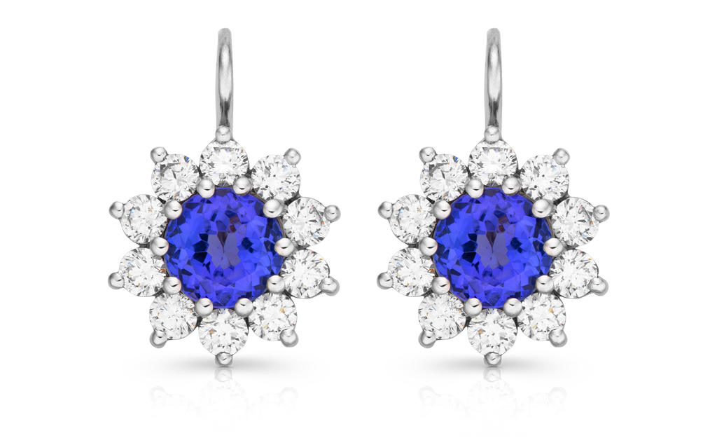 Centrální drahokamy obklopuje propracovaný HALO design osazený přírodními kalibrovanými diamanty o celkové hmotnosti 1.10ct v kvalitě G/VS2. Tento kontrast zvýrazňuje sytý modrofialový odstín tanzanitů a dodává náušnicím výrazný luxusní charakter, který se skvěle hodí pro výjimečné příležitosti.