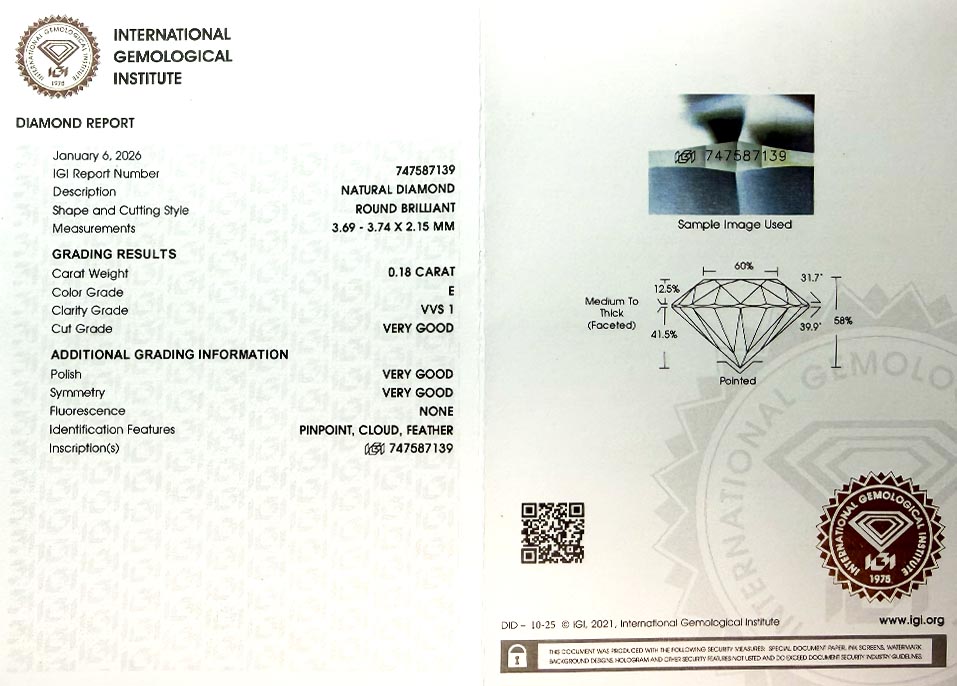 Pro snazší ověření pravosti diamantu označila laboratoř IGI jeho hranu vlastní mikroskopickou laserovou inskripcí.