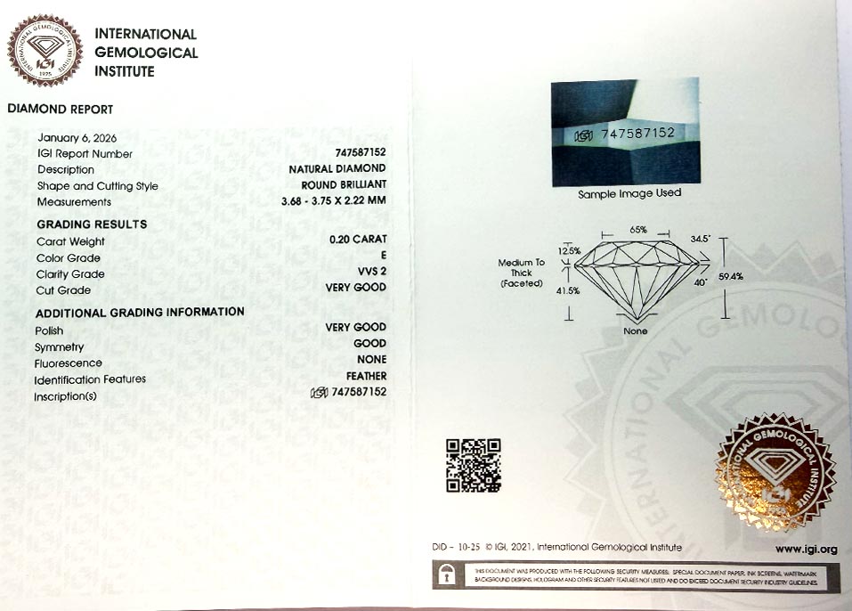Pro snazší ověření pravosti diamantu označila laboratoř IGI jeho hranu vlastní mikroskopickou laserovou inskripcí.