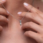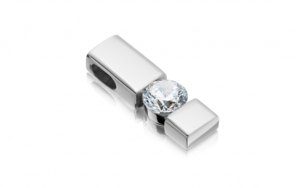 Výrazný model diamantového přívěsku, který je sestaven tak, aby pozorující nabyl pocitu, že spojení mezi dvěma protilehlými zlatými plíšky tvoří centrální diamant briliantového brusu. Ve skutečnosti je vytvořen pevný skrytý spoj přímo v zadní části šperku pod drahokamem, čímž je dosaženo jeho bezpečné, avšak velmi netradiční formy osazení. Vzhledem k charakteru designu je tento typ přívěsku vhodný pro různé hmotnostní kategorie kulatých drahokamů.