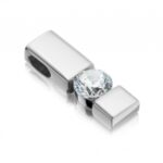 Výrazný model diamantového přívěsku, který je sestaven tak, aby pozorující nabyl pocitu, že spojení mezi dvěma protilehlými zlatými plíšky tvoří centrální diamant briliantového brusu. Ve skutečnosti je vytvořen pevný skrytý spoj přímo v zadní části šperku pod drahokamem, čímž je dosaženo jeho bezpečné, avšak velmi netradiční formy osazení. Vzhledem k charakteru designu je tento typ přívěsku vhodný pro různé hmotnostní kategorie kulatých drahokamů.