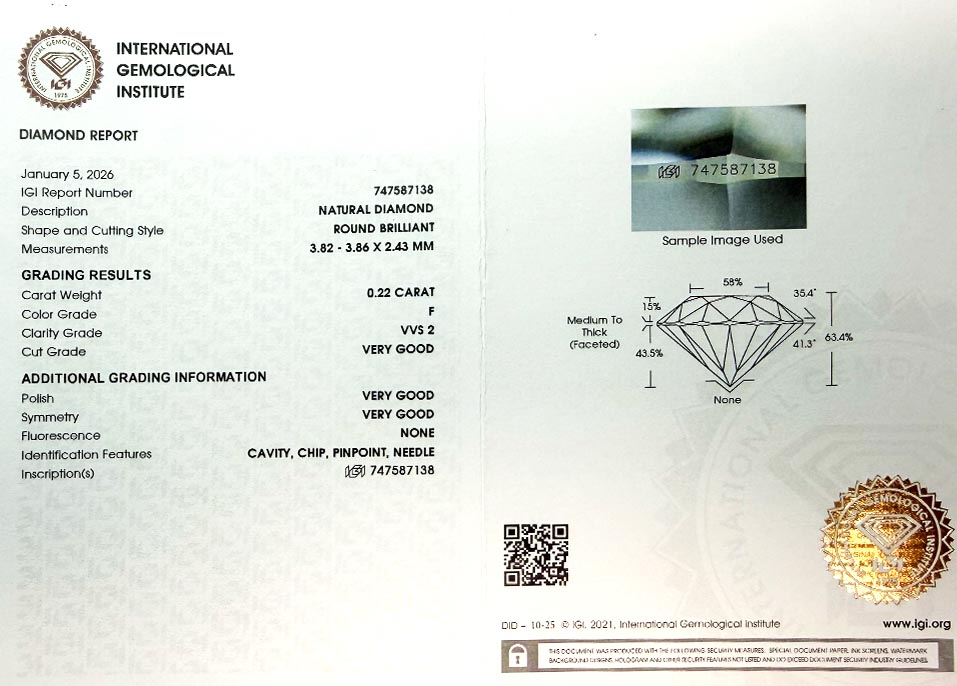 Pro snazší ověření pravosti diamantu označila laboratoř IGI jeho hranu vlastní mikroskopickou laserovou inskripcí.