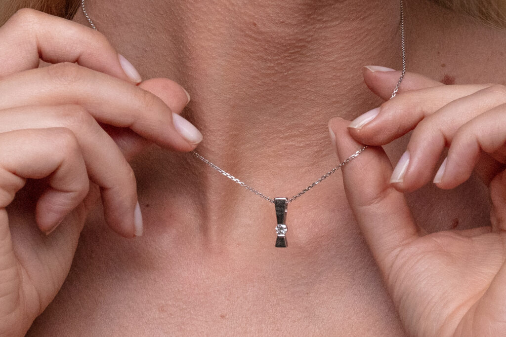 Šperk byl ručně vyroben ze 14k bílého zlata v pražském ateliéru a je osazen přírodním diamantem opatřeným mezinárodně uznávaným certifikátem gemologické laboratoře IGI.