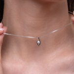 Velmi atypický model diamantového přívěsku sestavený pouze z jednoho kusu zlatého plíšku s jemně oblými hranami. Ten díky důmyslnému tvaru drží diamant kulatého briliantového brusu přímo ve své centrální části. Šperk je zároveň sestaven tak, aby velmi efektivním způsobem svíral protilehlé hrany drahokamu, čímž zabraňuje jeho nechtěnému uvolnění.