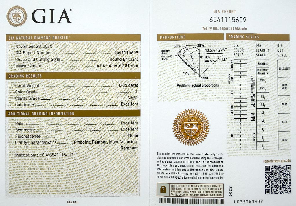 byl založen v roce 1931 a patří k absolutní špičce mezi gemologickými laboratořemi po celém světě a dodržuje pravidla stanovená Diamond High Council v plném rozsahu. Všechny diamanty na stránkách VVDiamonds opatřeny certifikátem GIA, lze verifikovat na stránkách GIA. Většina diamantů je laserově číslována pro větší bezpečnost obchodu.