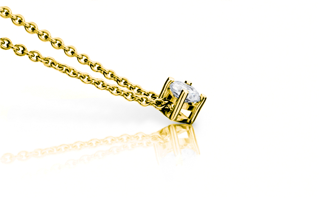 Jednoduchý model zlatého řetízku s diamantem, který je uchycen do kvadratického lůžka se čtyřmi kulatými krapnami, jehož konstrukce je zavěšena na zlatém řetízku typu anker. Spoj přívěsku s řetízkem není řešen pevný spojem, ale provlečením, a tak je umožněno posouvání osazeného drahokamu kulatého briliantového brusu po celé jeho délce.