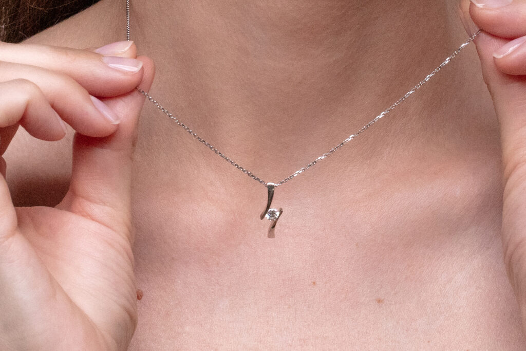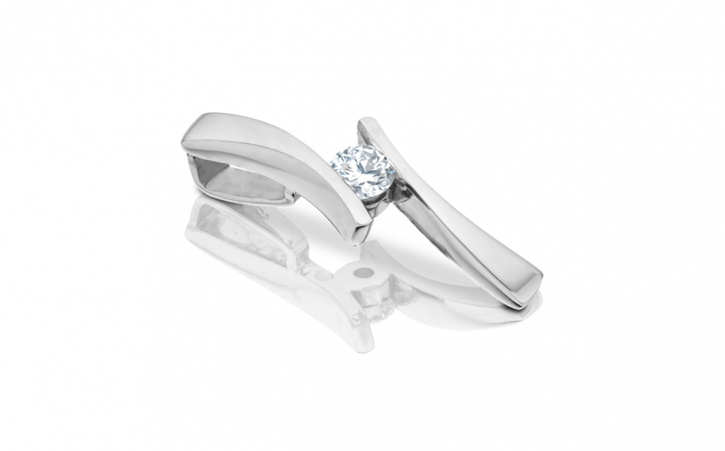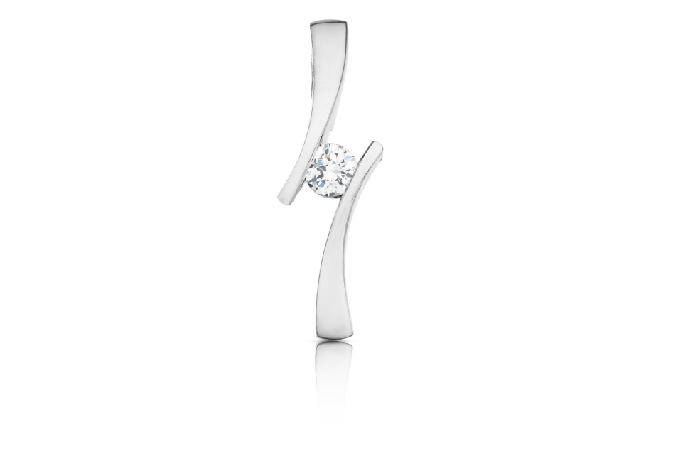 Oblíbený model diamantového přívěsku, jehož konstrukce je sestavena tak, aby měl pozorující pocit, že spoj mezi dvěma zlatými protilehlými rameny tvoří pouze centrální diamant kulatého briliantového brusu. Ve skutečnosti je pevný spoj vytvořen v samotné středové části přímo za drahokamem a zaručuje tak jeho bezpečné, avšak velmi elegantní osazení ve šperku.