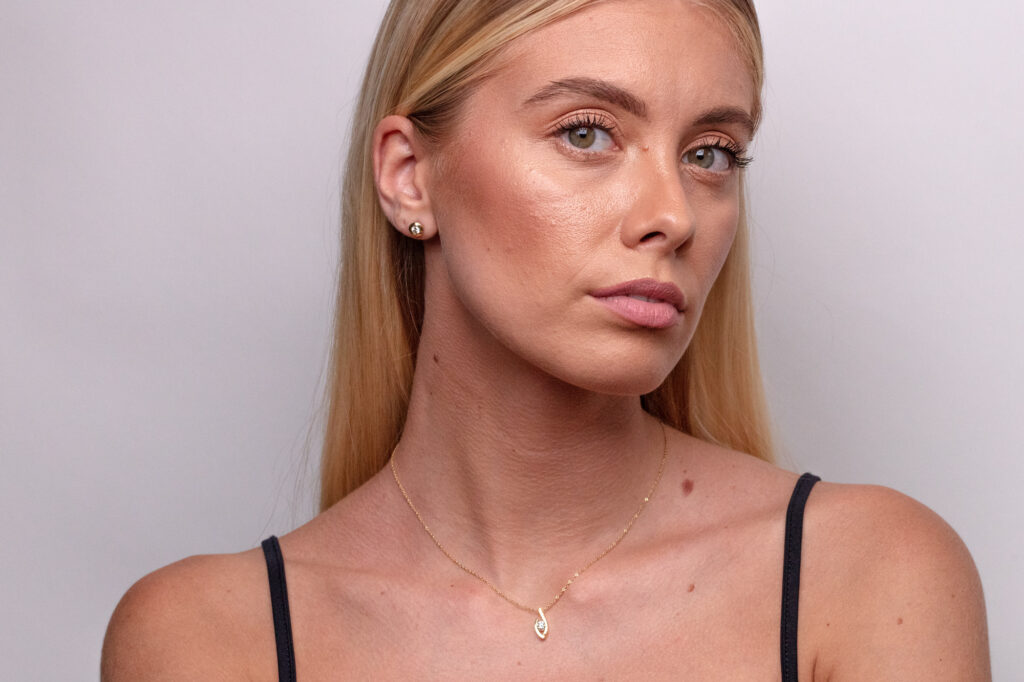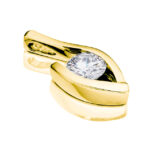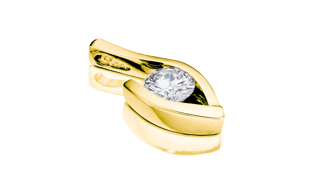 Velmi atypický model diamantového přívěsku sestavený pouze z jednoho kusu zlatého plíšku s jemně oblými hranami. Ten díky důmyslnému tvaru drží diamant kulatého briliantového brusu přímo ve své centrální části. Šperk je zároveň sestaven tak, aby velmi efektivním způsobem svíral protilehlé hrany drahokamu, čímž zabraňuje jeho nechtěnému uvolnění.