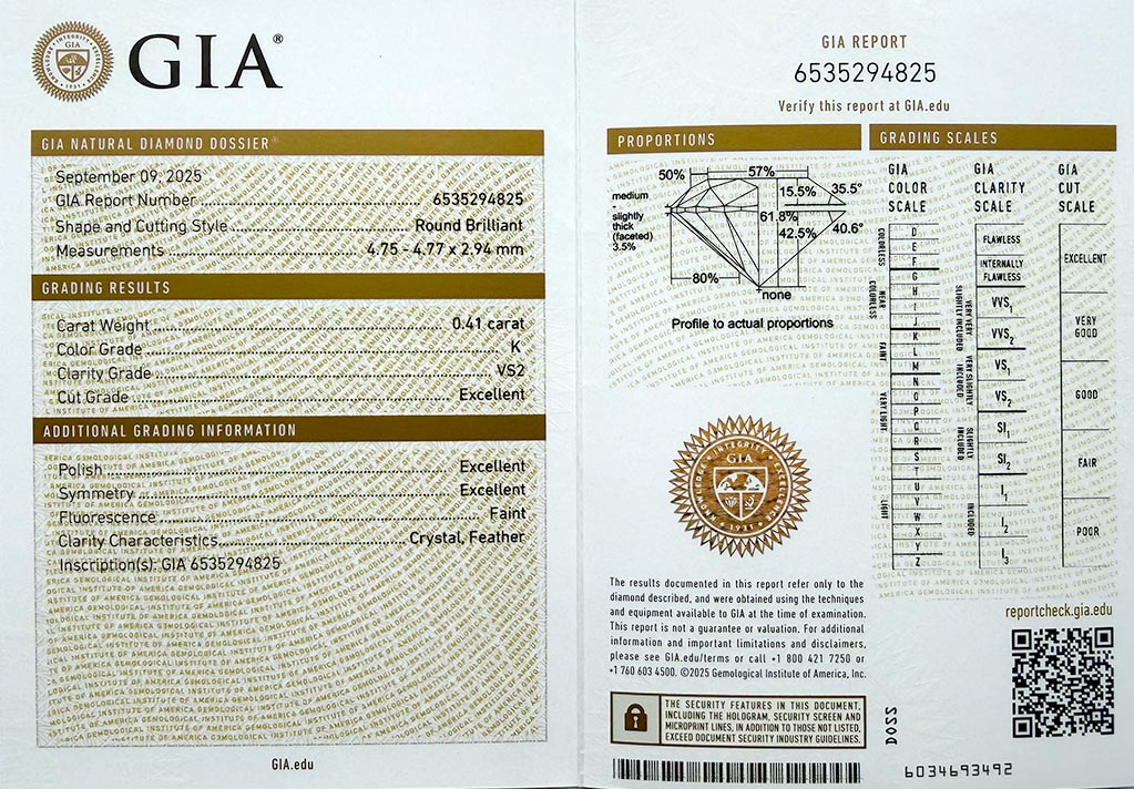 byl založen v roce 1931 a patří k absolutní špičce mezi gemologickými laboratořemi po celém světě a dodržuje pravidla stanovená Diamond High Council v plném rozsahu. Všechny diamanty na stránkách VVDiamonds opatřeny certifikátem GIA, lze verifikovat na stránkách GIA. Většina diamantů je laserově číslována pro větší bezpečnost obchodu.
