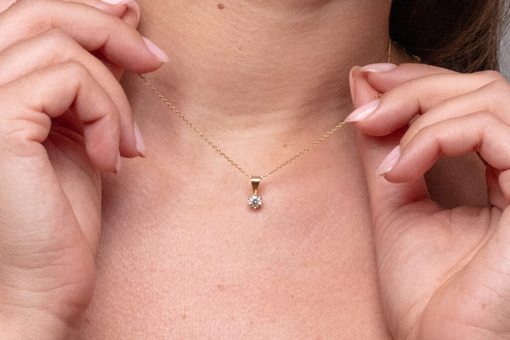 • zlatý přívěsek s diamantem 0.23ct E/VS1 s IGI certifikátem