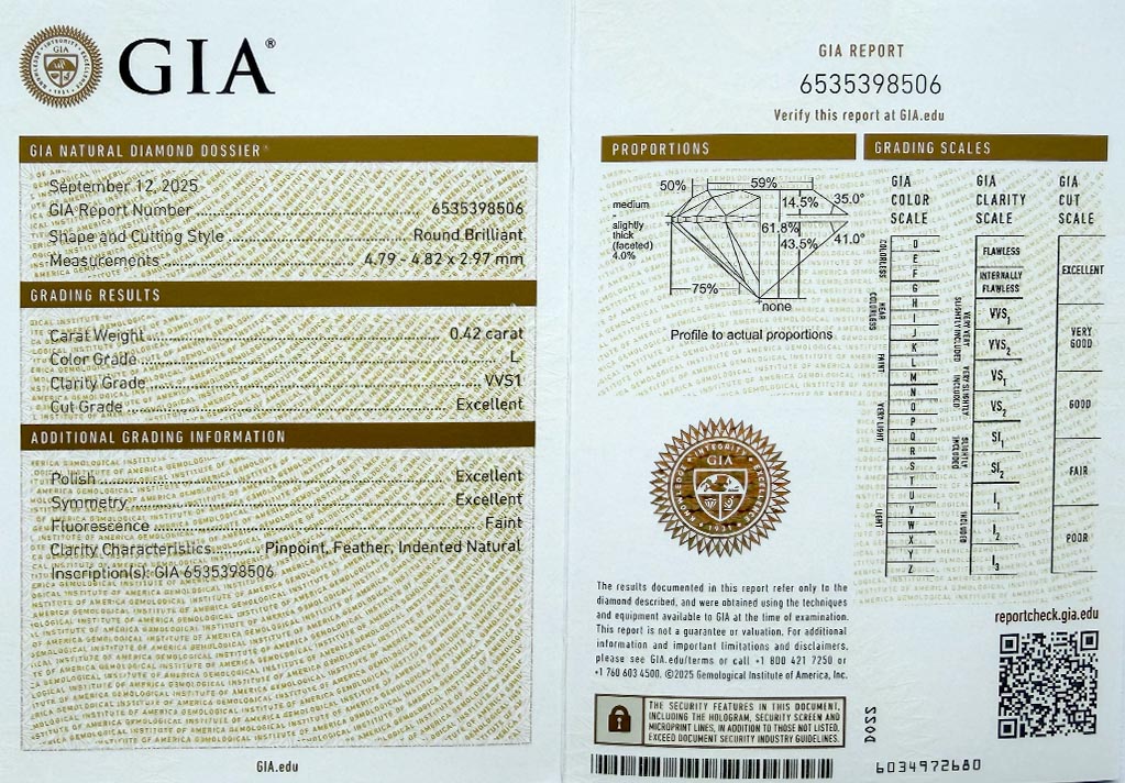 byl založen v roce 1931 a patří k absolutní špičce mezi gemologickými laboratořemi po celém světě a dodržuje pravidla stanovená Diamond High Council v plném rozsahu. Všechny diamanty na stránkách VVDiamonds opatřeny certifikátem GIA, lze verifikovat na stránkách GIA. Většina diamantů je laserově číslována pro větší bezpečnost obchodu.