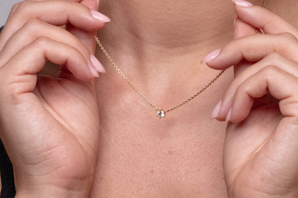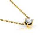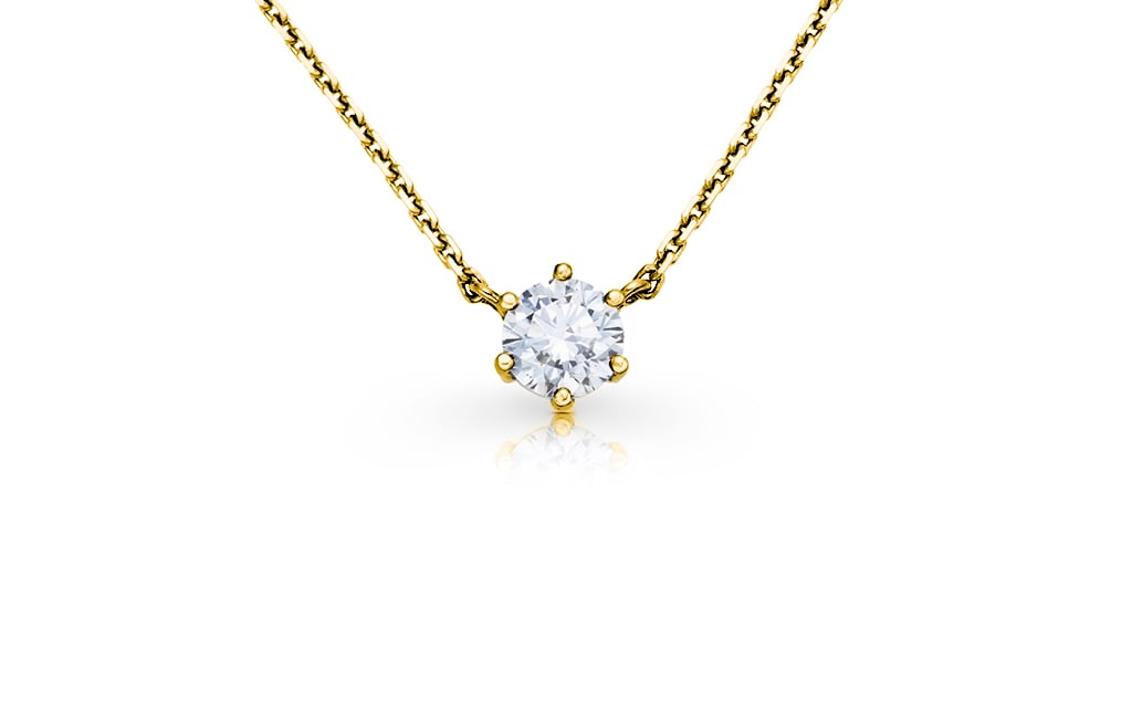 Jednoduchý, avšak velmi elegantní model zlatého řetízku s diamantem, který je uchycen do jemně zpracovaného šestikrapnového lůžka pevně spojeného se samotným řetízkem typu anker. Tímto kompaktním spojem přímo ve středu závěsu je zabráněno posouvání přívěsku po celé délce řetízku, a tedy i omezeno jeho přetáčení. Jedná se o velmi oblíbenou variantu šperku, která se dá velice snadno kombinovat s jinými druhy diamantových šperků.