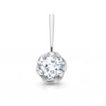 Největší klasika mezi našimi modely zlatých diamantových přívěsků. Tento jednoduchý šperk je sestaven z elegantního lůžka korunkového typu se šesti jemnými krapnami a jednoduchého závěsného očka, které se směrem k lůžku diamantu zužuje tak, aby jej opticky více povzneslo. Jedná se o velmi oblíbený design, jenž lze libovolně kombinovat s velkým množstvím zlatých diamantových šperků.