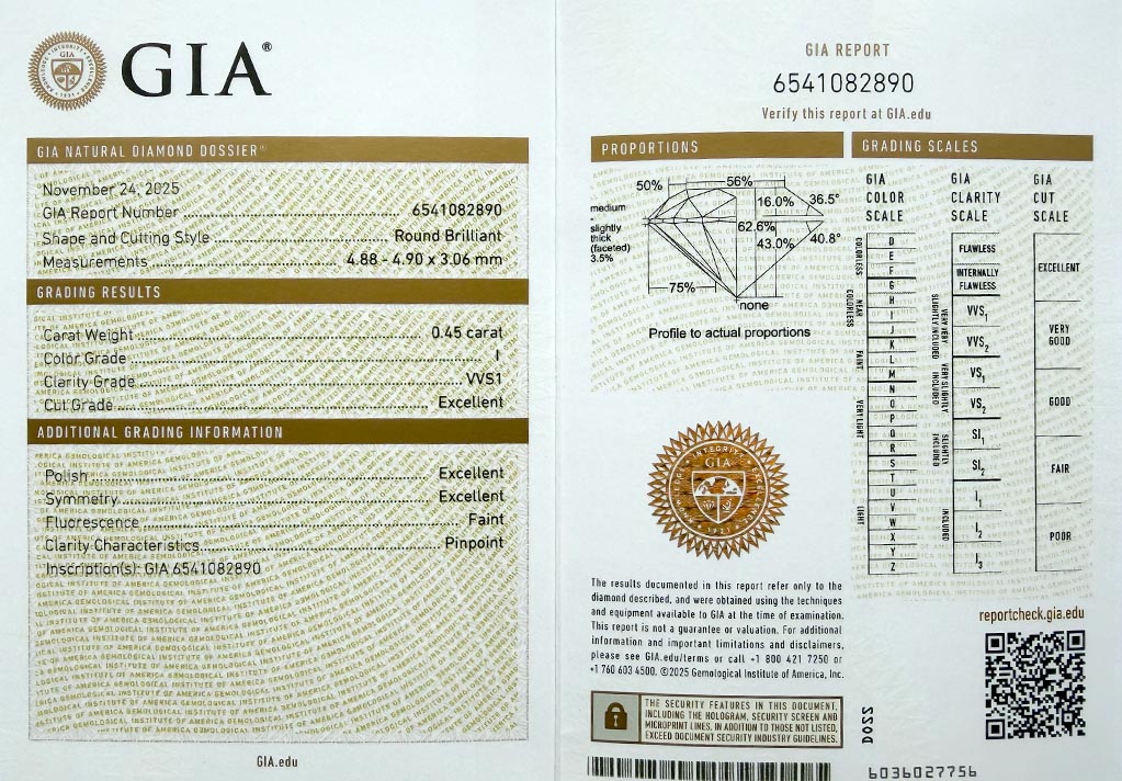 byl založen v roce 1931 a patří k absolutní špičce mezi gemologickými laboratořemi po celém světě a dodržuje pravidla stanovená Diamond High Council v plném rozsahu. Všechny diamanty na stránkách VVDiamonds opatřeny certifikátem GIA, lze verifikovat na stránkách GIA. Většina diamantů je laserově číslována pro větší bezpečnost obchodu.
