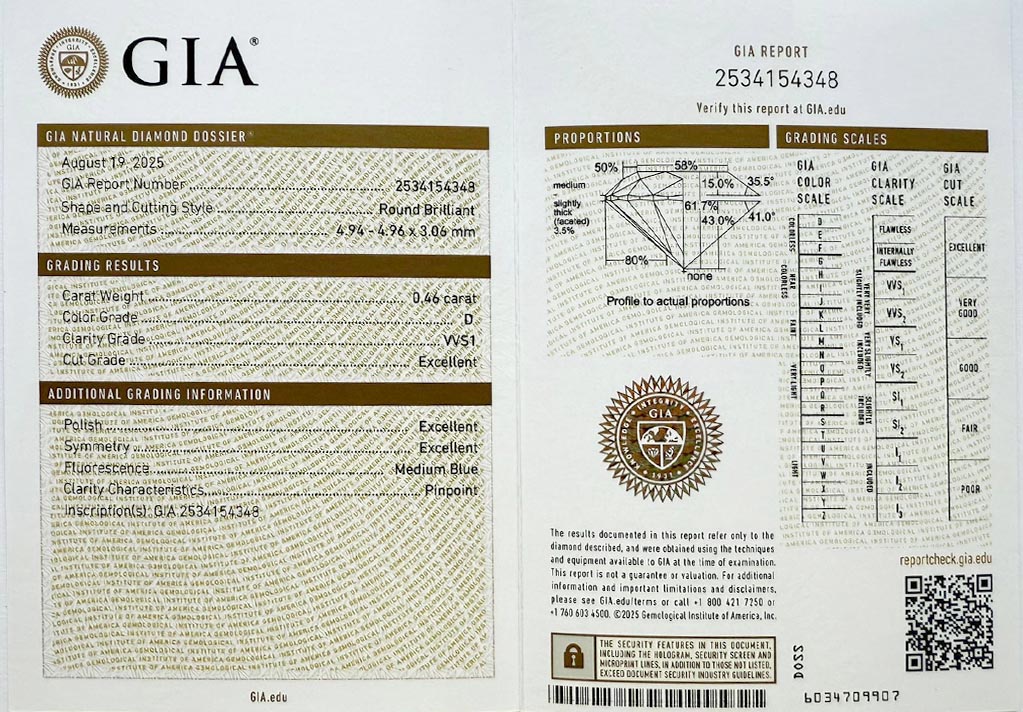 byl založen v roce 1931 a patří k absolutní špičce mezi gemologickými laboratořemi po celém světě a dodržuje pravidla stanovená Diamond High Council v plném rozsahu. Všechny diamanty na stránkách VVDiamonds opatřeny certifikátem GIA, lze verifikovat na stránkách GIA. Většina diamantů je laserově číslována pro větší bezpečnost obchodu.