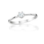 Jemná alternativa klasického designu diamantového prstenu, obohacená o vyvyšující se zlatou linii obroučky šperku, směřující pohled přímo k jeho nádherné korunce, tvořené šesti pevnými krapnami bezpečně svírajícími centrální briliant. Tento jedinečný prvek osazený přírodním diamantem tak tvoří neopominutelnou dominantu celého šperku, který může nalézt uplatnění nejen jako zásnubní prsten.