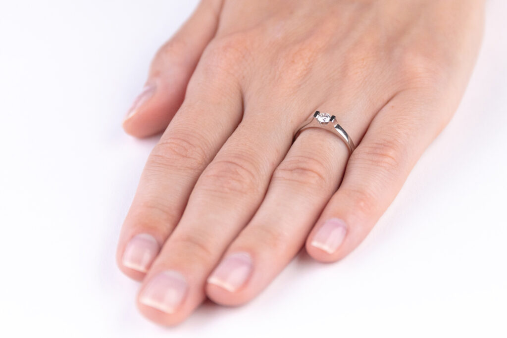 Netradiční typ diamantového prstenu, u něhož je na první pohled zřejmá absence klasické korunky vystupující nad kroužek prstenu. Osazení diamantu je zakomponované přímo v jeho obroučce. Ta je ve své horní části protažena a propilována do písmene „U“, čímž je vytvořeno velmi efektní lůžko, které při bočním pohledu na šperk umožňuje spatřit briliantový brus v celé jeho kráse. Jedná se o typ prstenu, jenž je vhodný především jako dárek k různým životním příležitostem, ale může být využit také jako zásnubní prsten.