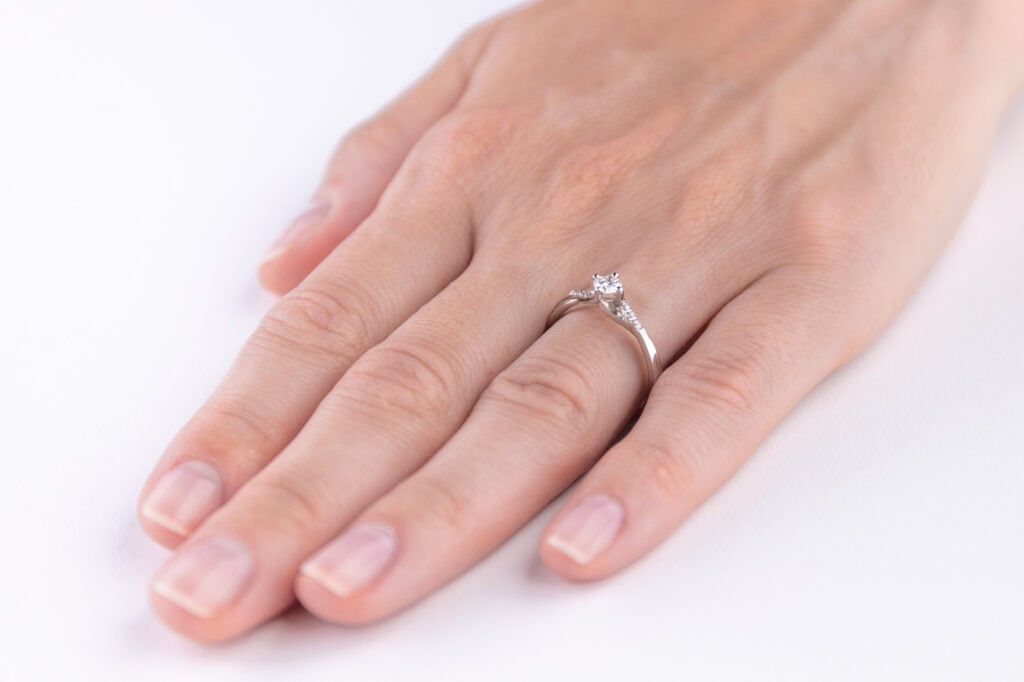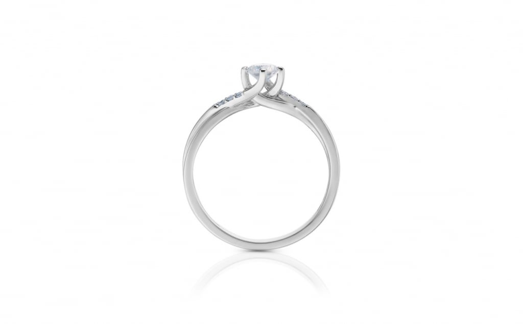 Oblíbený model diamantového prstenu, působící velmi jemným a decentním dojmem. Obroučka šperku je ve své polovině vybroušena do čtyř propletených zlatých paprsků tvořících elegantní kvadratickou korunku prstenu. Dva protilehlé paprsky jsou zároveň ozdobeny šesti kusy necertifikovaných diamantů o průměru 1.20 mm. Vzhledem ke svému designu je prsten vhodný pro osazení diamantů již od hmotnosti 0.18ct.