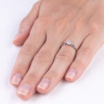 Diamantový prsten, jenž se bezesporu řadí mezi velmi oblíbené modely z naší kolekce zlatých diamantových šperků. Usazenému diamantu v jemné korunce se šesti krapnami dá vyniknout elegantní obroučka, která se směrem k diamantu zužuje a z bočního pohledu rozděluje do dvou decentních paprsků končících v centrální části šperku. Tradičně se u našich klientů jedná o žádaný zásnubní prsten, který lze snadno kombinovat se snubní obroučkou.