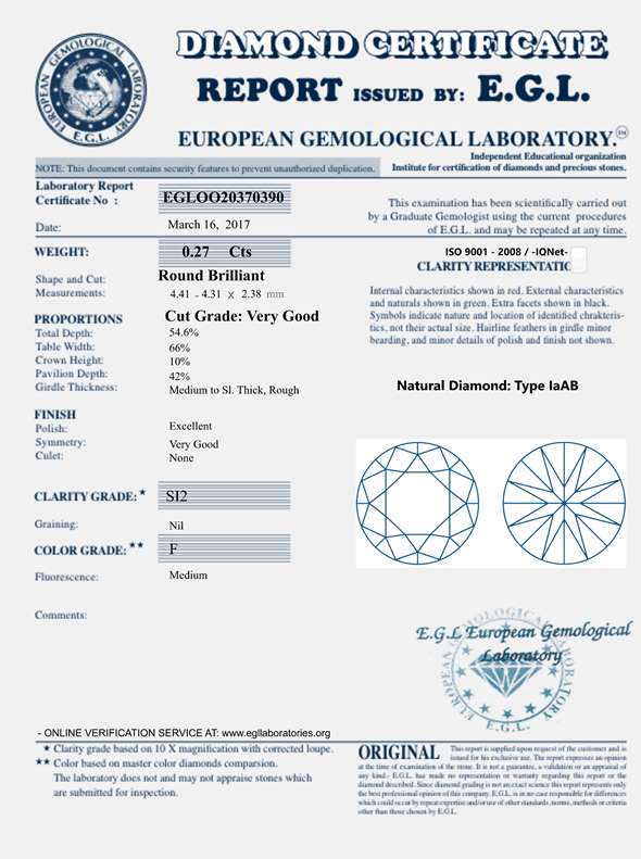 zlatý prsten s diamantem 0.27ct F/SI2 s EGL certifikátem